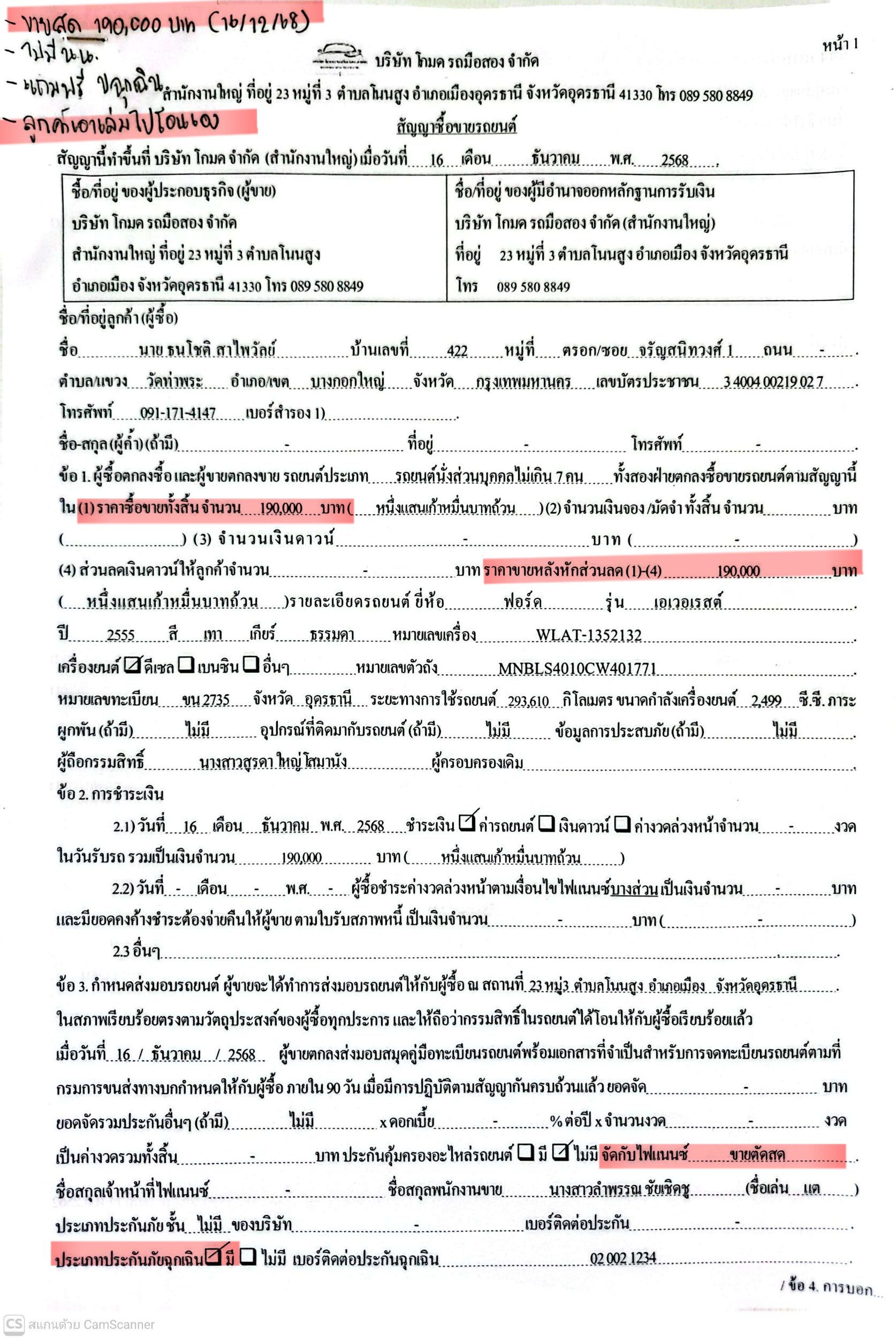 9 04/12/2025 มอตโต้ ขอนแก่น 0 ผพ 2356 กระบะแค็ป NISSAN