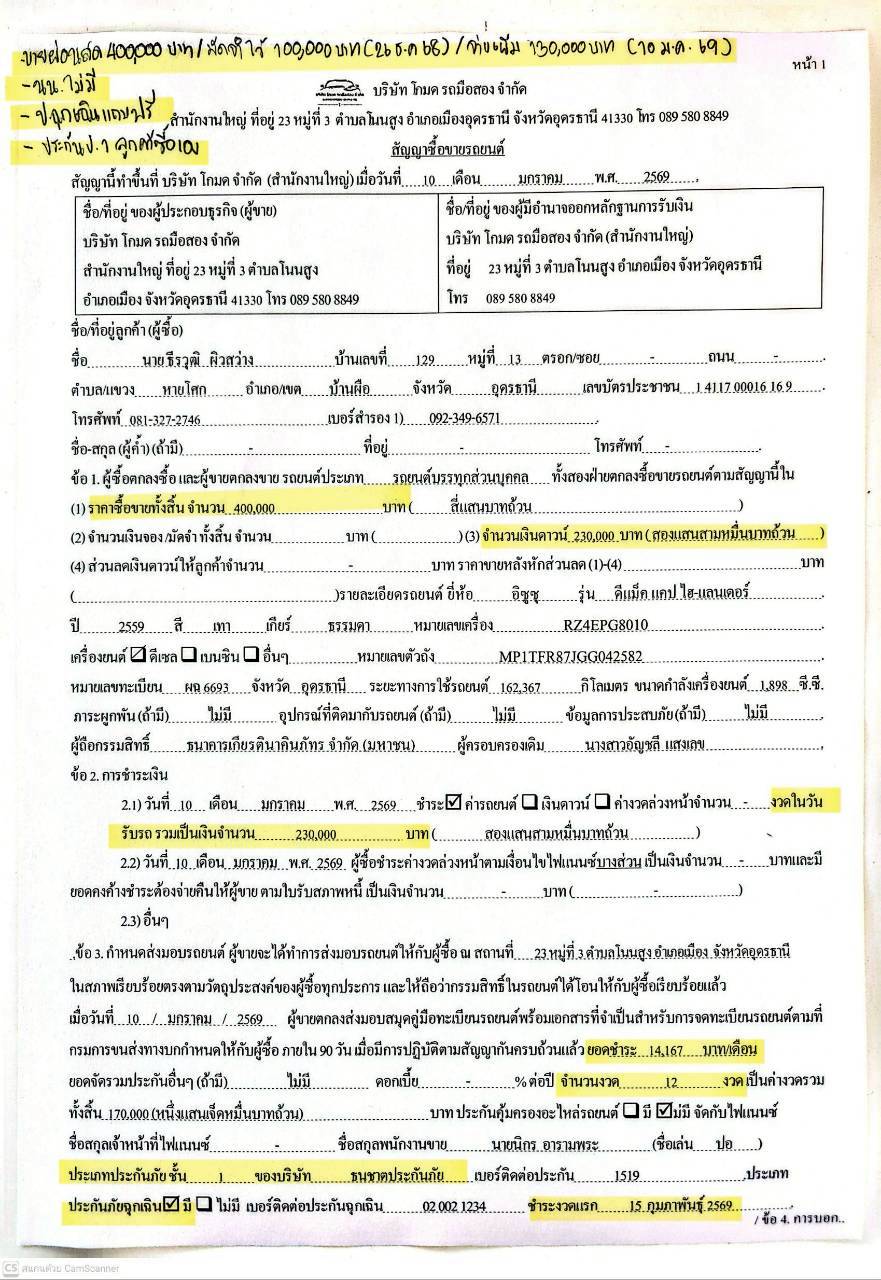 ผ่อน12เดือน เดือนละ 14,167 งวดแรก20/2/69