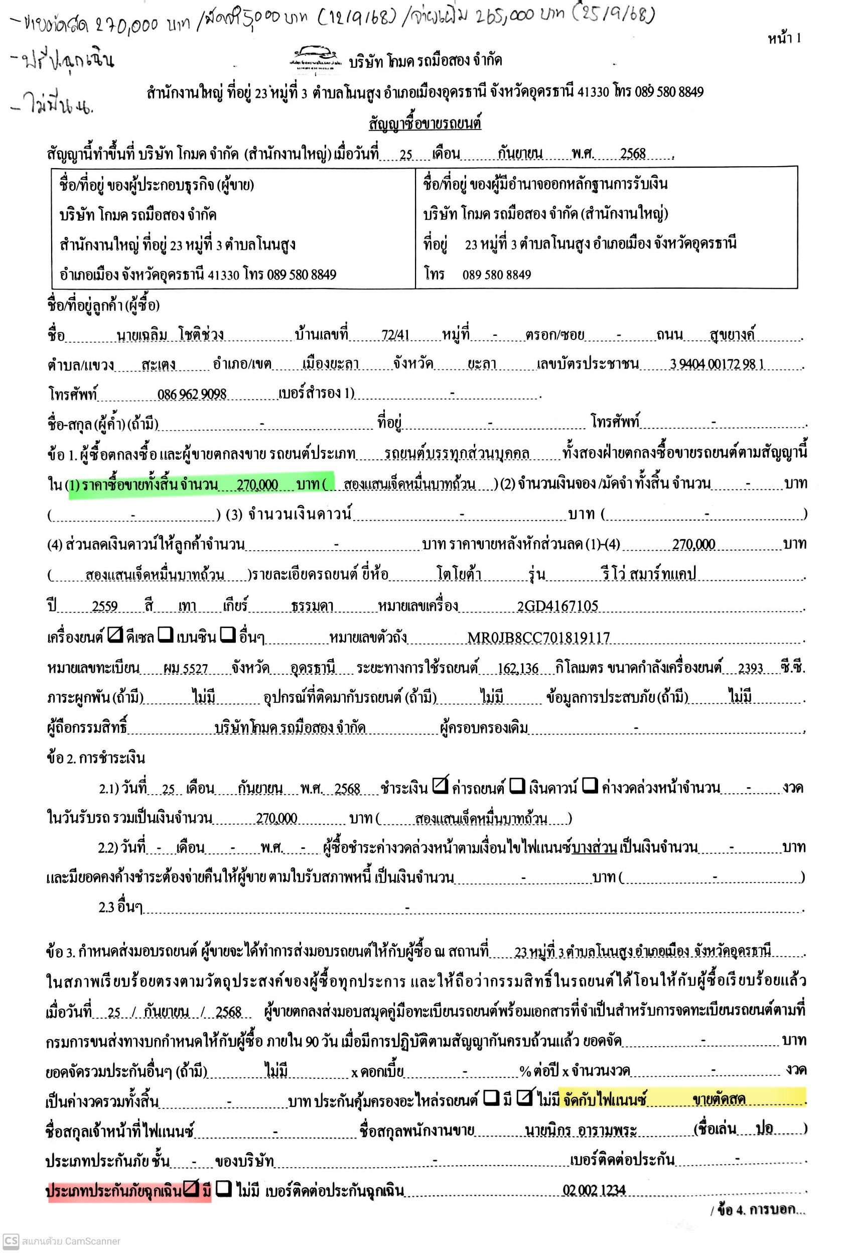 27/09/2025 | ม็อตโต้ | 0 | 2ฒษ2091 | กระบะแค็ป | TOYOTA Revo สมาร์ทแคป สีขาว (ไมล์ 227,569กม.)แม่เเรง,เหล็กหมุน,ยางอะไหล่ ข้อมูลการขาย นางกฤษนา สีหาโคตร | ขายแล้ว | |