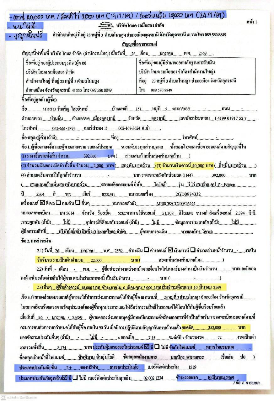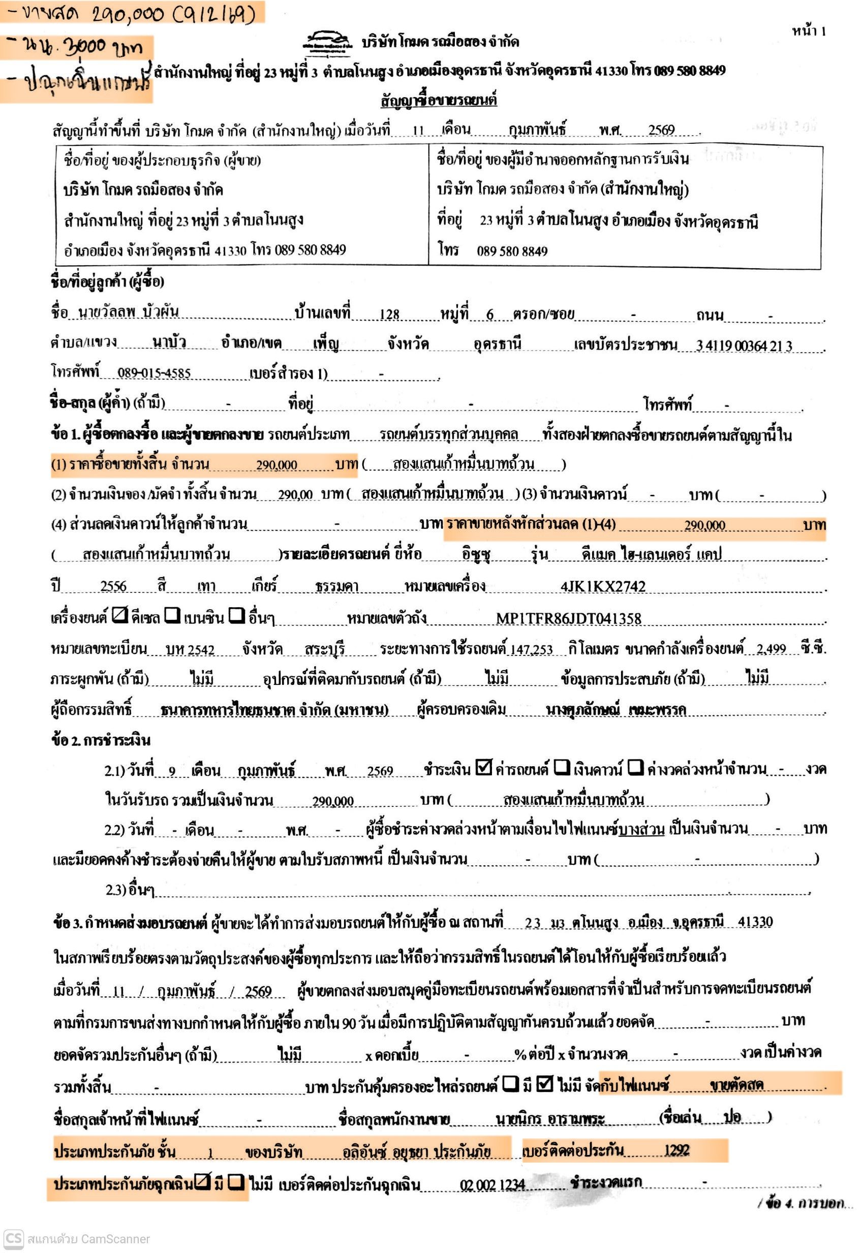23/02/2026 | ม็อตโต้อุดร | 0 | ผผ 3188 | กระบะแค็ป | MITSUBISHI ไททั้น แคป เทา ปี59/2016 2.4cc ข้อมูลการขาย นายอภิเซษฐ์ ขวัญเขียน 095-214-0649 จัดกรุงศรี 6,819*72 ค้างดาวน์ 5,000 บาท นัดชำระงวดแรก 30/3/69(2,500) | ขายแล้ว | |